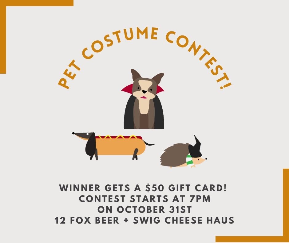 Bring your four-legged best friend in their cutest, funniest, or spookiest costume and join the fun under the pavilion at 12 Fox Beer Co.