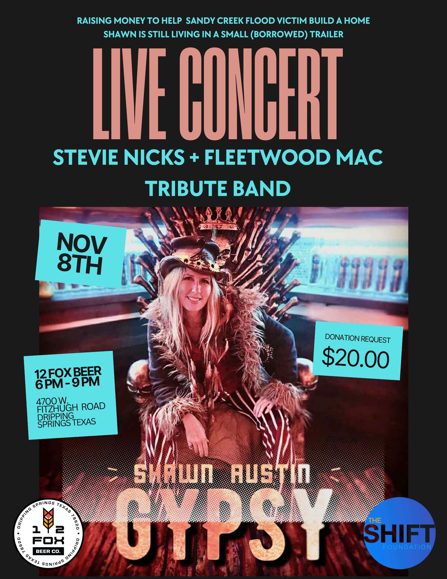 Experience an unforgettable evening of Hill Country music with Shawn Austin & Gypsy ATX, a crowd-favorite known for powerful vocals and soulful Stevie Nicks-style energy.