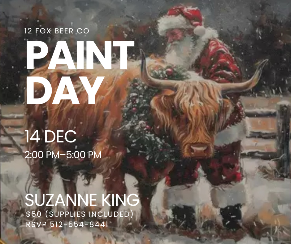 Kick off the holiday season with a cozy, festive afternoon of creativity as we paint this adorable Santa + Highland Cow scene with the talented Suzanne King!
