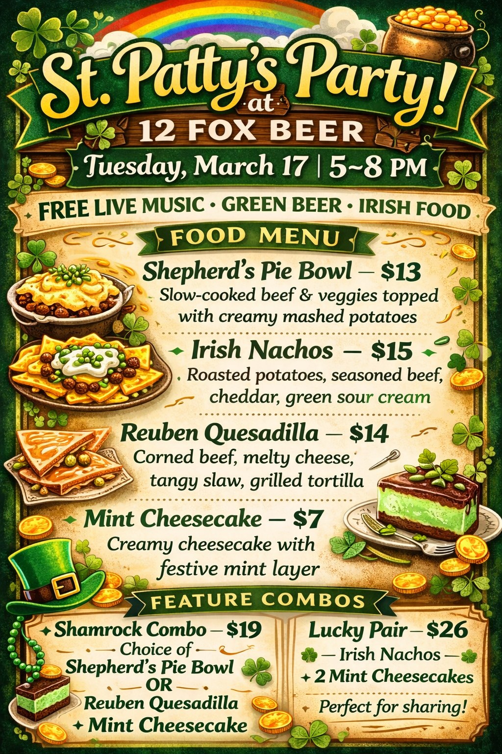 🍀 St. Patty’s Party at 12 Fox Beer 🍀
