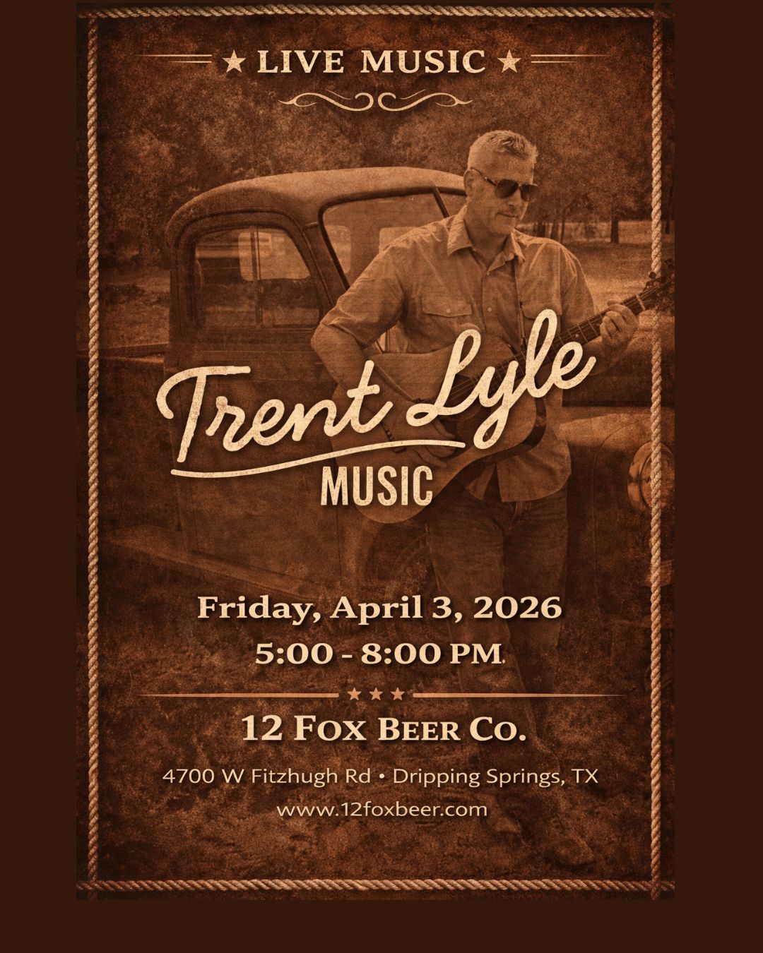 Join us at 12 Fox for an easygoing evening of live music with Trent Lyle, great drinks, and a relaxed Hill Country atmosphere.